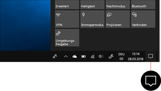 Benachrichtigungen und schnelle Aktionen finden Sie in Windows 10 im neuen Info-Center. Die Einstellungen, wie und wann Ihnen Benachrichtigungen angezeigt werden sollen und welche Apps und Einstellungen Ihre wichtigsten schnellen Aktionen sind, können jederzeit angepasst werden.